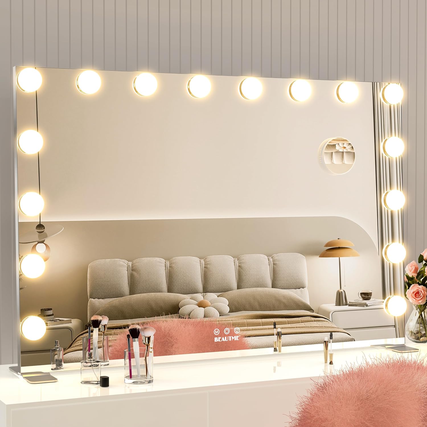 View allBEAUTME Vanity Mirror, Large Hollywood Mirror with Lights for Tabletop,Lighted Makeup Mirror for Dressing Room & Bedroom