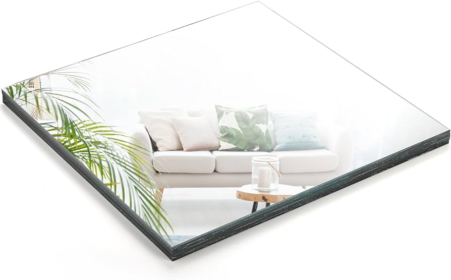 A plastic mirror that is lighter and more difficult to break than a plate glass mirror. It is more susceptible to scratching. Cleaning should only be done with a very soft cloth and water.